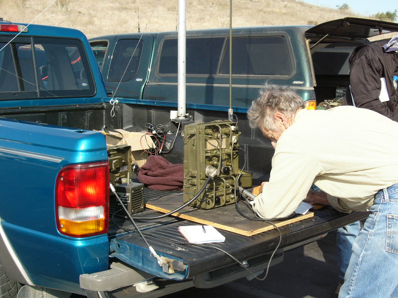 Here are some pictures that I took at my team’s site during the 2005 Military Radio Collector’s Group Field Exercise, on November 5, 2005 near Fort MacArthur in San Pedro, California. Bill Feldman N6PY and I set up in a parking lot at Friendship Park, with a nice view overlooking the ocean. We fielded a BC-1306 HF backpack transceiver, a BC-659 10m FM transceiver, and my Chinese Type 102E HF transceiver.