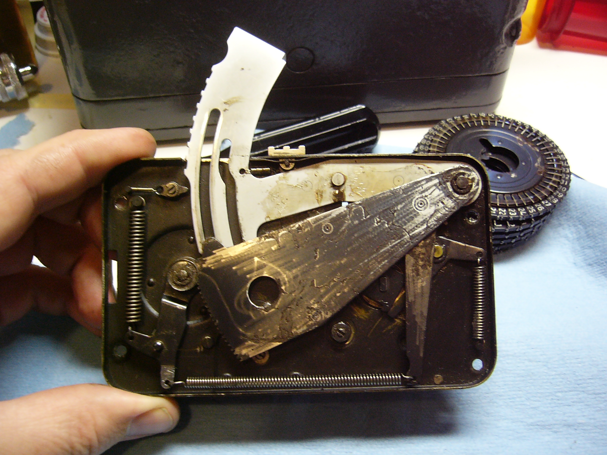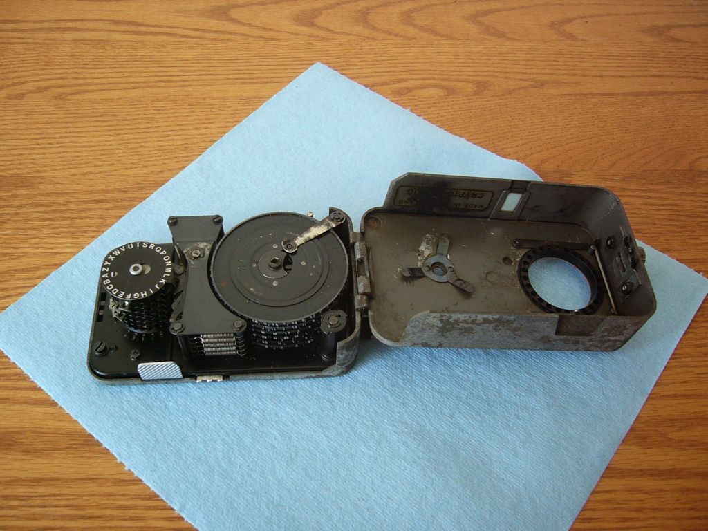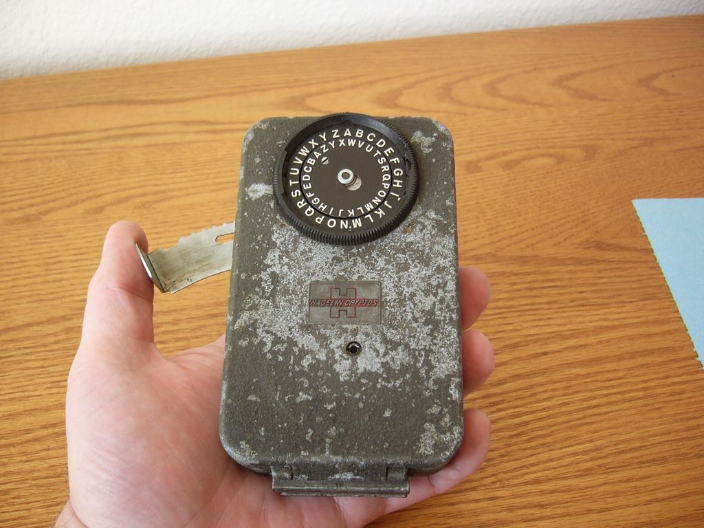 The Hagelin CD-57 Pocket Cryptographer is a pocket-sized (for largish pockets) cipher machine which works on the same principal as the M-209 Converter. I’ll write a more detailed description later; for now, here are some pictures of my CD-57 that I found on eBay.