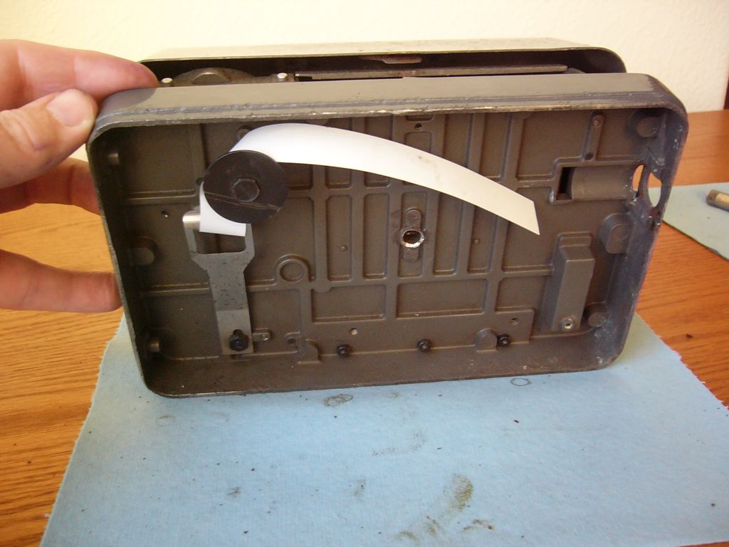 I finally have the machine back together. There are some parts that I wasn’t able to fix, such as a frozen shaft in the paper feed, I don’t have key the key blanks I’ll need to reinstall the lock, and the “F/V” cam doesn’t always pop into the right position until the machine is cycled a few times, but the machine appears to be working now. I cleaned the lug bars in my ultrasonic cleaner, but I had to clean most of the rest of the machine by hand.