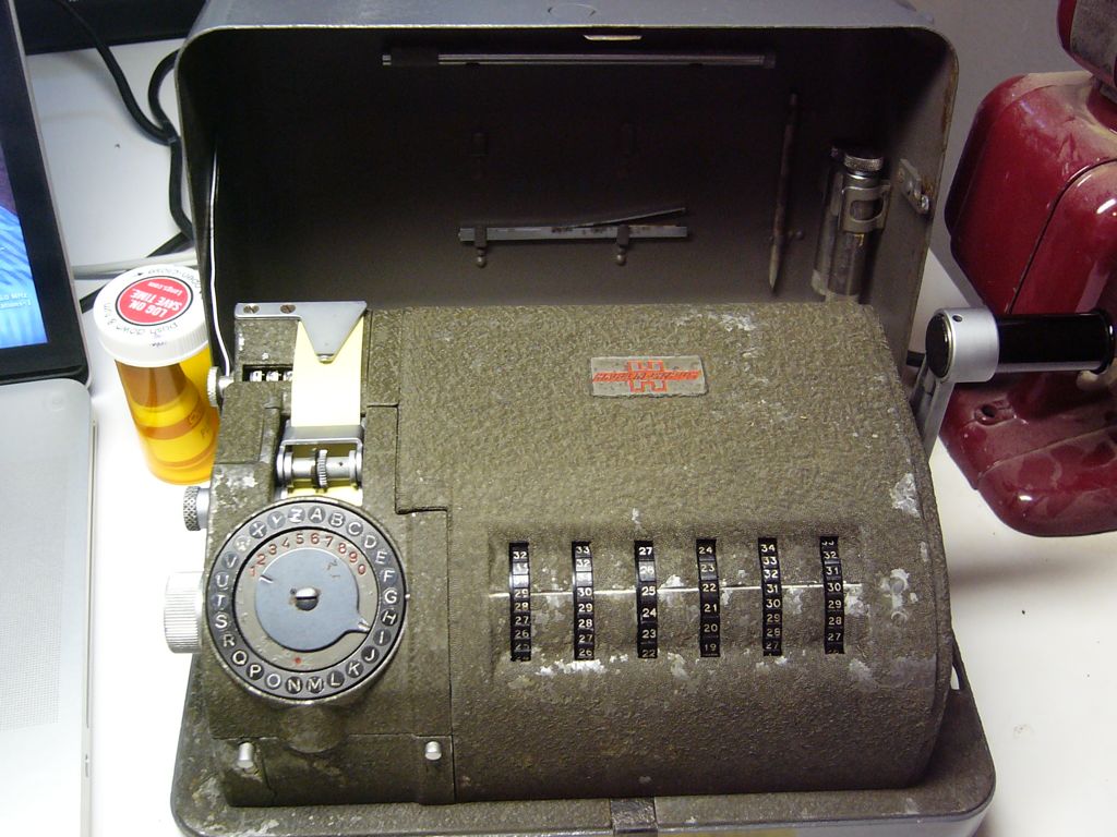 The Hagelin CX-52 cipher machine which works on the same principal as the M-209 Converter. I’ll write a more detailed description later; for now, here are some pictures of my CX-52 that I found on eBay, along with some details about how I cleaned up and repaired it.