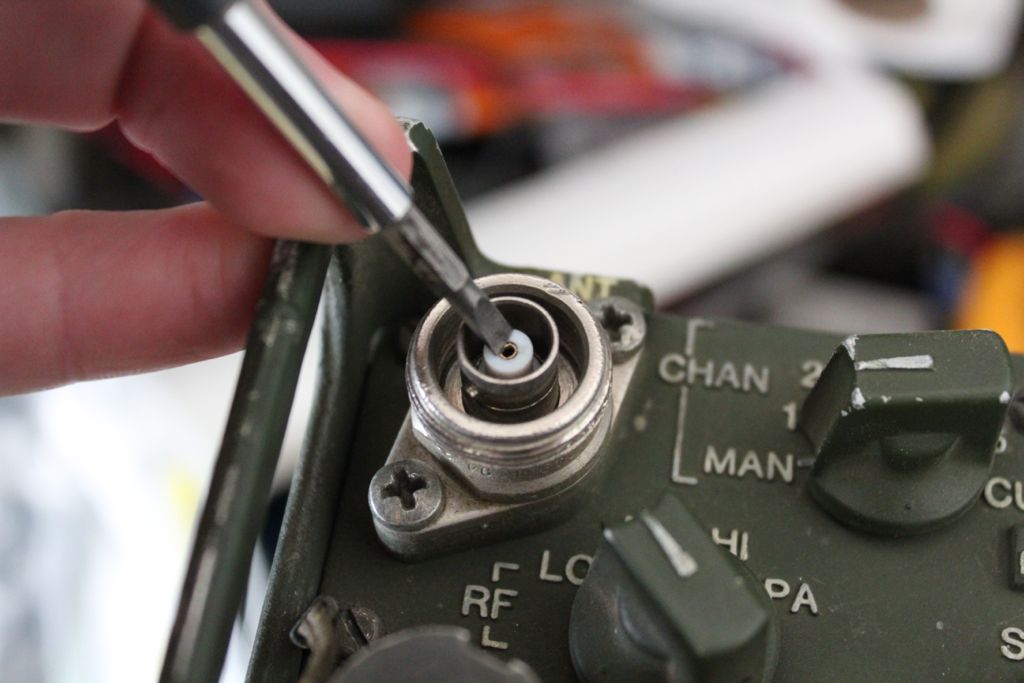 RT-1439 SINCGARS antenna connector with switch actuated.